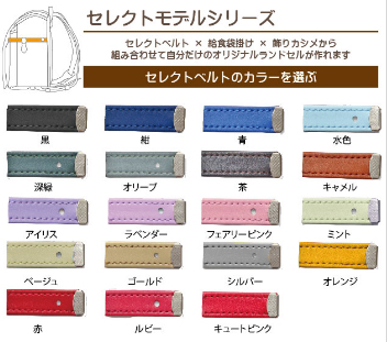 横山鞄 ランドセルには セレクトモデル と フラットモデル があり、セレクトモデルでは本体色・ベルトカラー・金具色などを組み合わせて、自分だけのオリジナルデザインを楽しめます。
